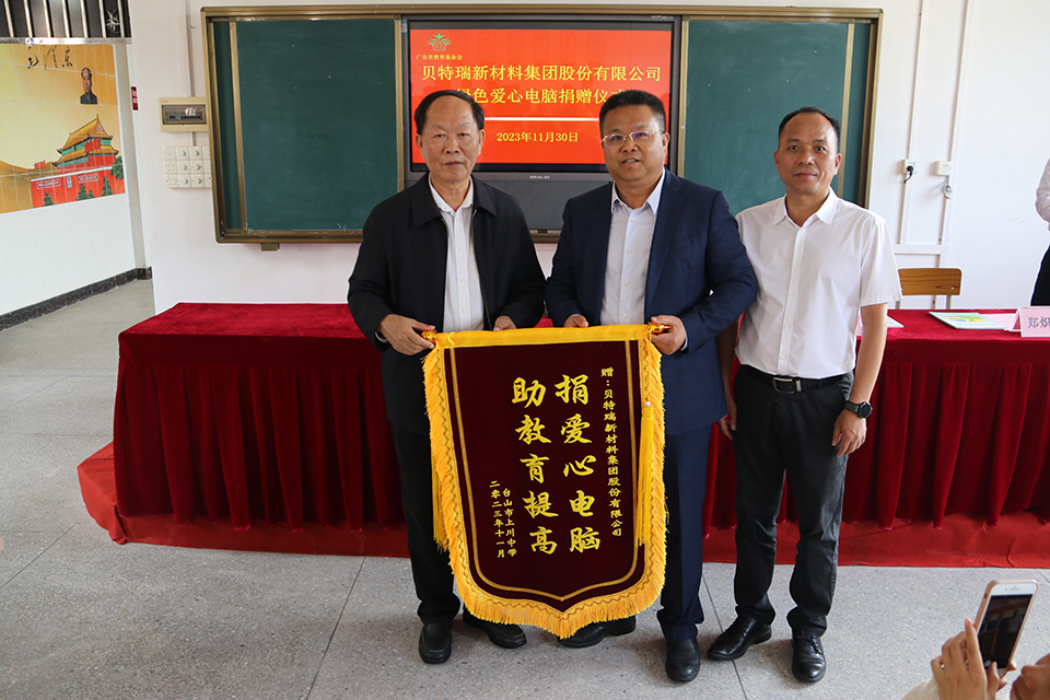 鄭熾欽秘書長代表我會向貝特瑞新材料集團股份有限公司表示衷心的感謝。他說,此次愛心捐贈,給廢舊電腦賦予新使命,讓閑置的電腦為鄉(xiāng)村教育和信息化建設(shè)重新開機,為學(xué)校彌補了教學(xué)資源的不足,不僅傳遞了公益愛心,也踐行了低碳環(huán)保理念。貝特瑞新材料集團股份有限公司的愛心善舉,不僅完善了學(xué)校的教學(xué)設(shè)備,為學(xué)校開展信息化教學(xué)工作提供了更好的條件,也為弘揚樂善好施的傳統(tǒng)美德樹立了優(yōu)秀的榜樣!