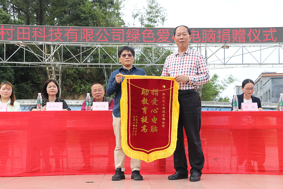 廣東省教育基金會(huì)副理事長兼秘書長鄭熾欽、副秘書長謝紹熺,深圳村田科技有限公司IT經(jīng)理何杏平、行政科經(jīng)理龍紅玫,陽春市教育局黨組成員、副局長謝桃,工會(huì)主席梁素瓊,馬水中學(xué)校長崔敬藝,深圳八方園通信息技術(shù)服務(wù)有限公司慈善項(xiàng)目負(fù)責(zé)人覃娥,馬水中學(xué)師生代表參加了捐贈(zèng)儀式。