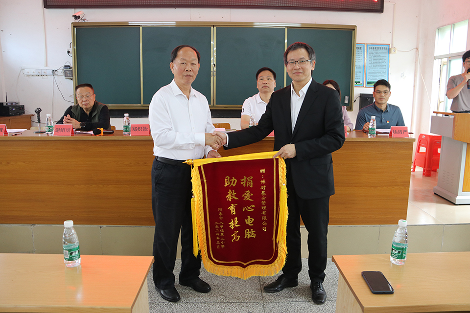 譚元軍副局長(zhǎng)代表陽春市教育局對(duì)支持和無償捐助陽春教育事業(yè)的愛心企業(yè)、愛心人士表示衷心的感謝和崇高的敬意。她說,愛心企業(yè)對(duì)陽春教育事業(yè)的大力支持,為推動(dòng)陽春教育事業(yè)持續(xù)健康發(fā)展添磚加瓦、貢獻(xiàn)力量。博時(shí)基金管理有限公司的愛心捐贈(zèng)進(jìn)一步改善了學(xué)校的軟硬件設(shè)施,豐富了教學(xué)工具,提升了學(xué)生們的信息技術(shù)認(rèn)知和應(yīng)用能力。