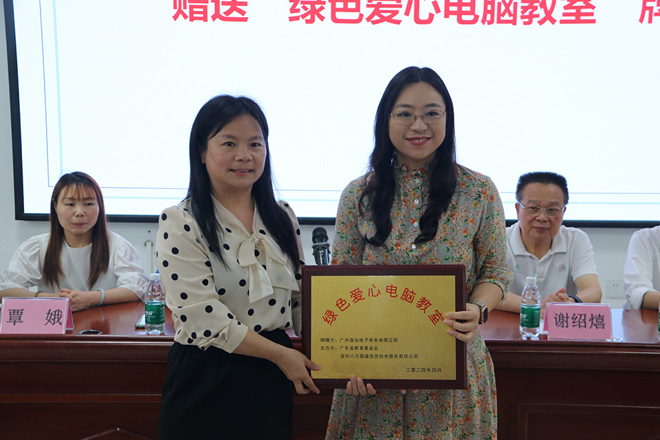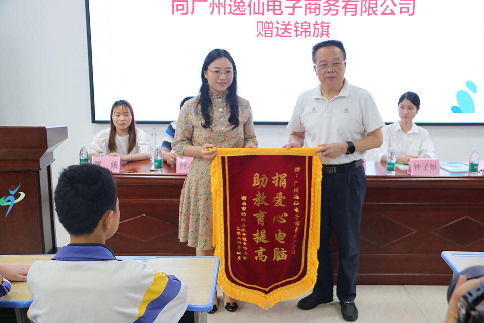 廣州逸仙電子商務有限公司向太平鎮(zhèn)中心小學贈送“綠色愛心電腦教室”牌匾