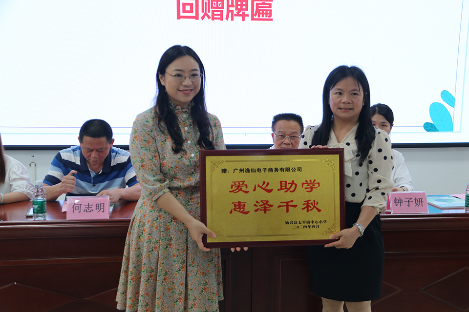 太平鎮(zhèn)中心小學向廣州逸仙電子商務有限公司回贈牌匾