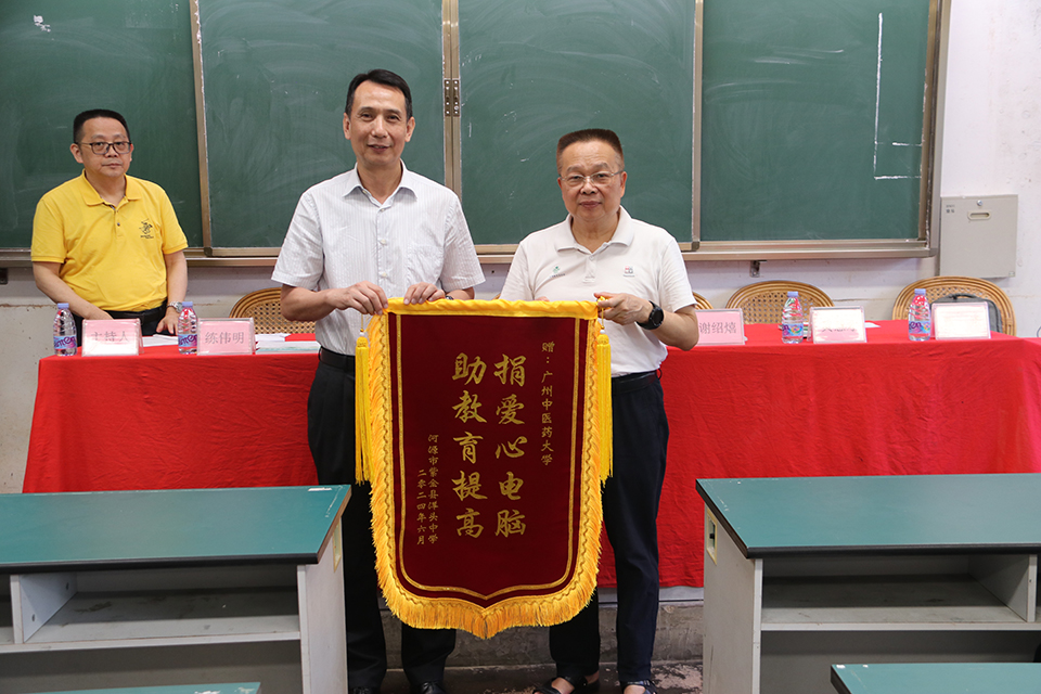 廣州中醫(yī)藥大學(xué)向洋頭中學(xué)贈(zèng)送“綠色愛心電腦教室”牌匾