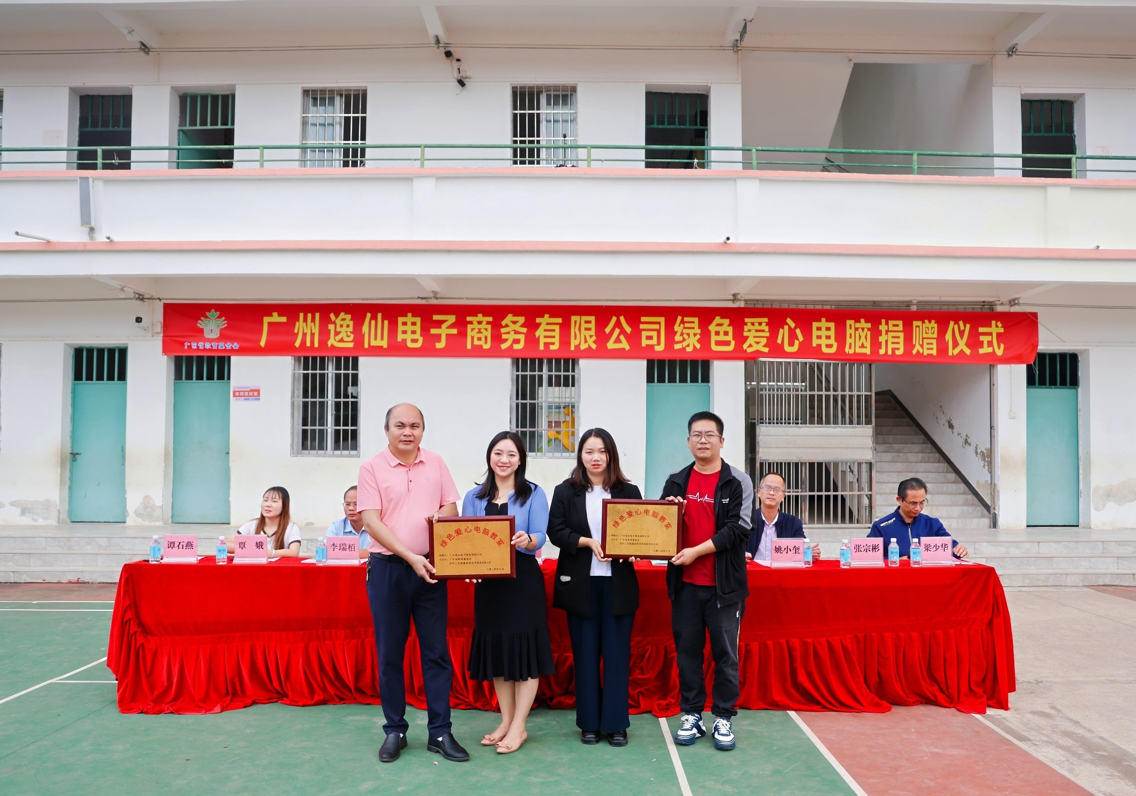 廣州逸仙電子商務(wù)有限公司向新圩教學(xué)點(diǎn)、大林教學(xué)點(diǎn)贈(zèng)送“綠色愛心電腦教室”牌匾